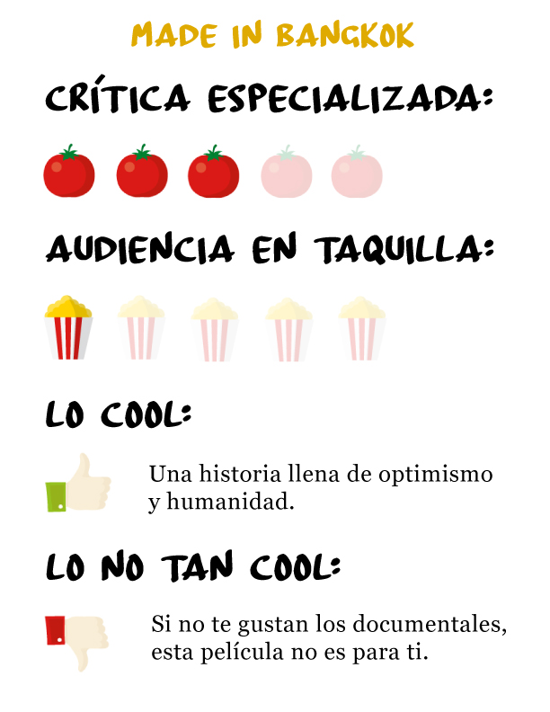 Made in Bangkok, es un documental sobre Morgana, una mujer transgénero de origen mexicano que se ha enfrentado a todo el mundo para poder realizarse una operación de cambio de sexo. De igual manera, tendrá que luchar contra uno de los dilemas más polémicos de los tiempos modernos: Autoafirmar su identidad ante todos y participar en un concurso de belleza que podría ser un plan muy arriesgado.