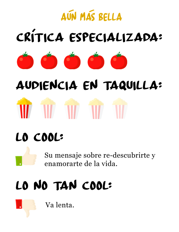 Masticadito y en la boca es la sección de cine perfecta para ti! No te pierdas el mejor análisis de los estrenos de Cinépolis cada semana con: crítica especializada, rating de audiencia, lo mejor y peor del film, trailer y sinopsis.  Recuerda que con los tomates, puedes conocer qué tan bien recibida ha sido la película para los críticos del cine de arte. Mientras que el número de palomitas explica qué tan entretenida es, así como el éxito en taquillas que ha tenido y que en base a esto, elijas la mejor opción para ti.