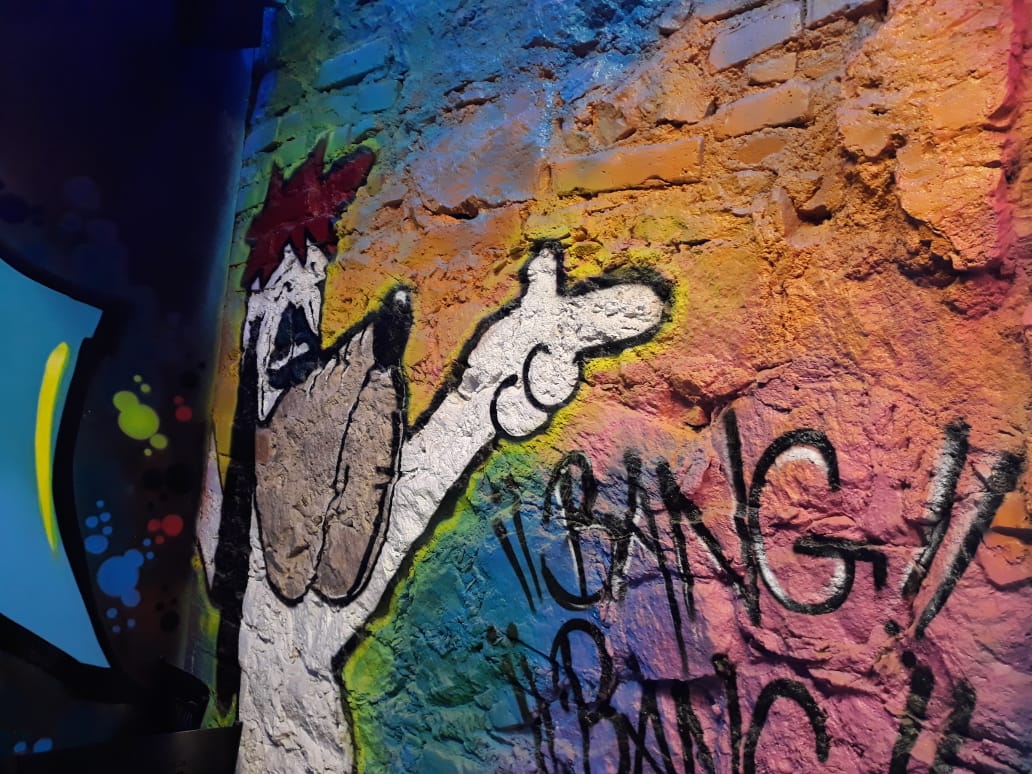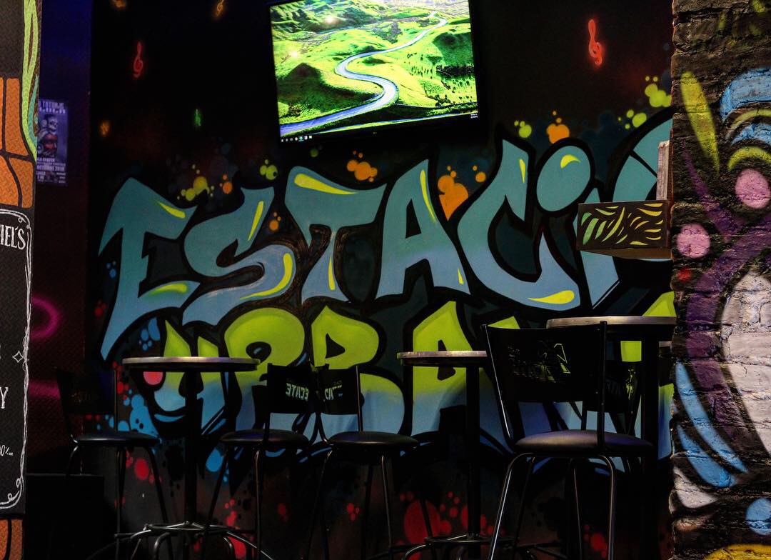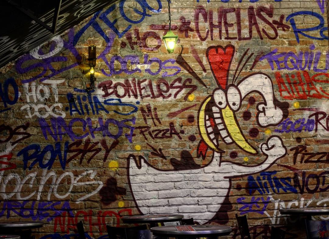 Estación urbana es un bar con mucha buena onda, desde que entras tiene un concepto súper original y nada parecido a lo que ya todos conocemos. Para empezar, una de las cosas que más jala es su decoración, pues por todos lados tiene graffitis y murales bien padres, y si naciste por ahí de los 90’s vas a identificar a muchos de los personajes que tiene tatuados en sus paredes ¿Te acuerdas de Jaimico, La vaca y el pollito, CatDog, Hey Arnold y todas las caricaturas de nuestros tiempos? Pues aquí los podrás ver y hasta se te va a antojar una foto con ellos.