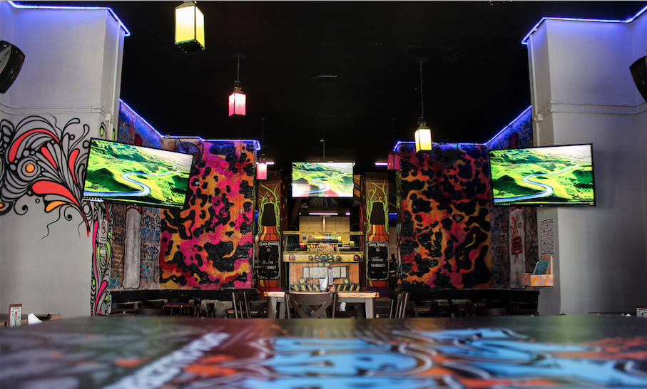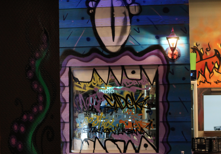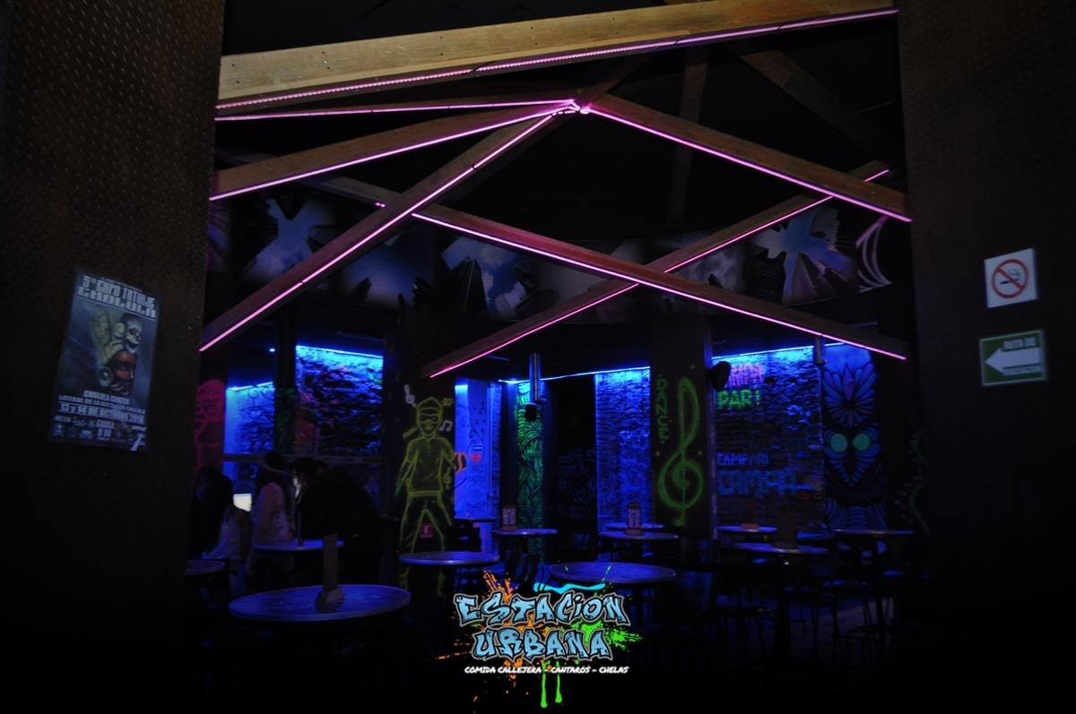 Además, también manejan una onda medio neon, que en la noche se ve de locura ¡Algunos de los graffitis brillan en la oscuridad y se ve UFFF! Tienen luces led que le dan un toque como de rayos laser bien chido. Sin duda, un lugar al que vas a querer entrar desde que lo veas por fuera.